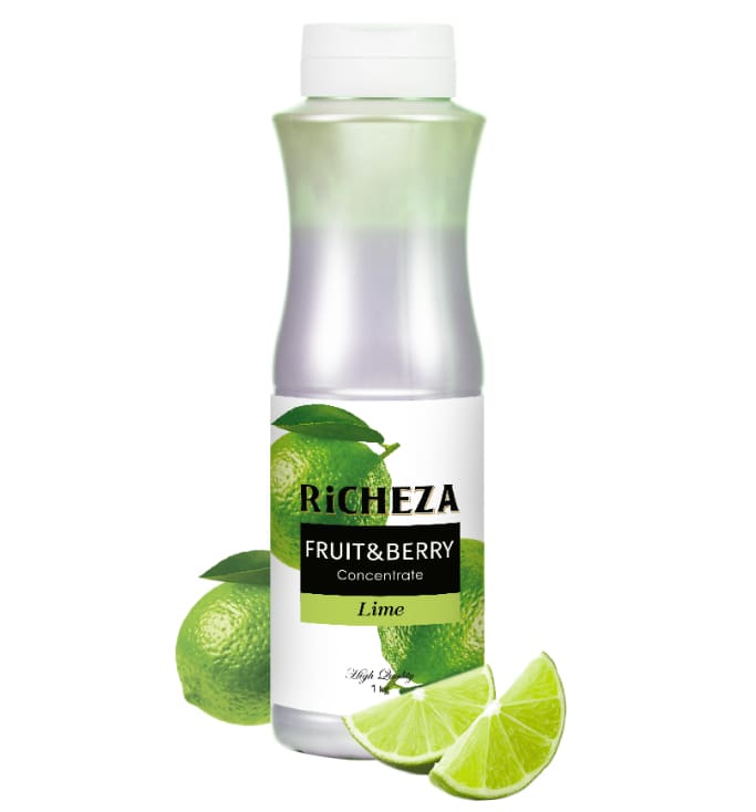 Концентрат RiCHEZA «Лайм», созданный на основе натурального пюре лайма, удивит характерным цитрусовым вкусом и ароматом лайма. Идеален для коктейлей и лимонадов, горячих и холодных напитков, смузи, сорбетов и десертов, а также для соусов и маринадов!