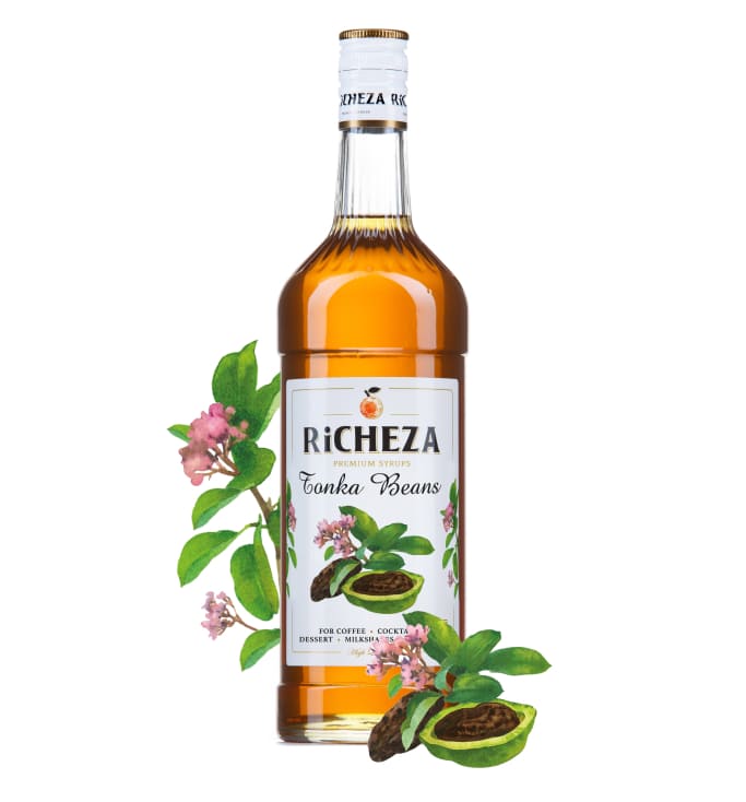 Сироп RiCHEZA Бобы Тонка — это насыщенный, сложный вкус и аромат, сочетающий ноты ванили, миндаля, гвоздики с тонким древесно-пряным послевкусием. Бобы тонка попали в Европу благодаря испанским конкистадорам, которые везли их через океан как драгоценность, достойную королей.